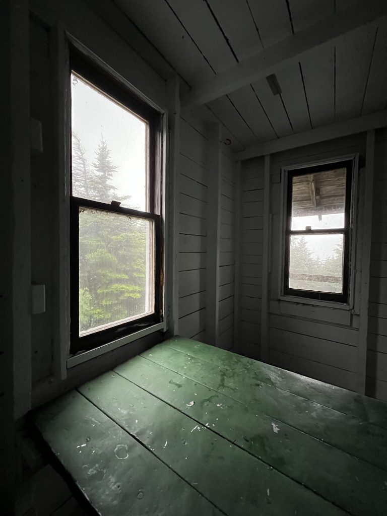 He walked inside and we exchanged hello. He saw my pack sitting next to me and asked if I were staying the night. I looked at his small pack and realized he was not staying the night. I immediately became nervous for him as it was already after 6pm and the skies were dark with an impending downpour. He sat down, pulled out a bowl of fresh fruit, offered me some and we chatted about our kids, fishing, and hiking. His name was John and he was on his 46th 4k. His son was a climbing guide in Colorado. I mentioned to him that the water source was dry, so if he needed water, he’d be out of luck. He said he had plenty and offered me two of his bottles (he had brought 5 with him!) The trail provides and it was the best trail magic. He packed his bag, we said goodbye and off down the mountain he went.