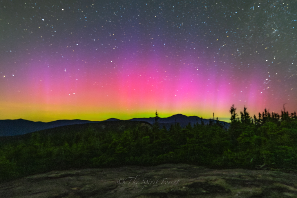 I made my way back to the main peak to watch the sunset and get a quick nap in before I’d spend the rest of the night taking pictures. I fell asleep and when I awoke, I thought I had overslept as the night sky began to get lighter. I checked my watch and it was only 10:30pm. I looked up and saw white streaks darting across the sky and pointed my iPhone toward the Presidential range. It was the aurora borealis.